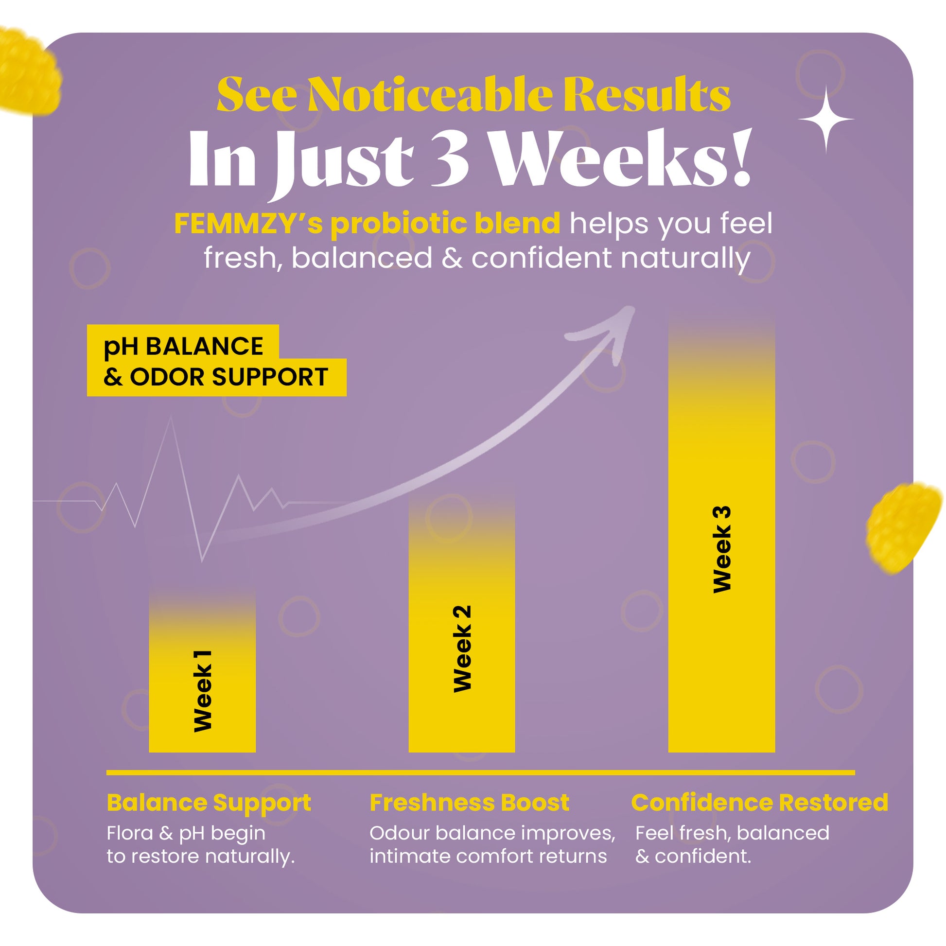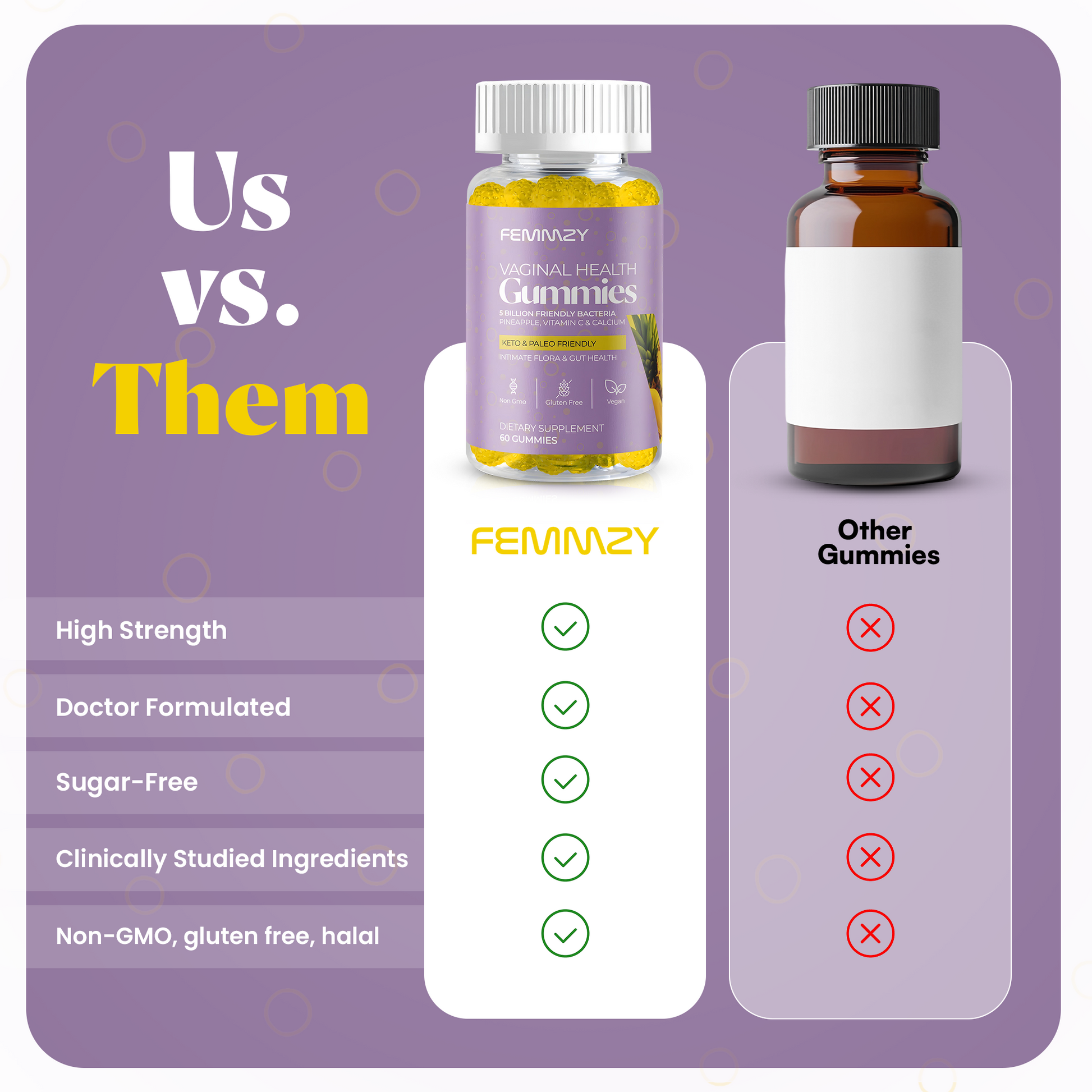 Say goodbye to bland supplements with Femmzy tropical pineapple-flavored probiotic gummies—delicious, sugar-free, and packed with 5 billion CFU to support vaginal health, pH balance, intimate flora, and gut wellness.