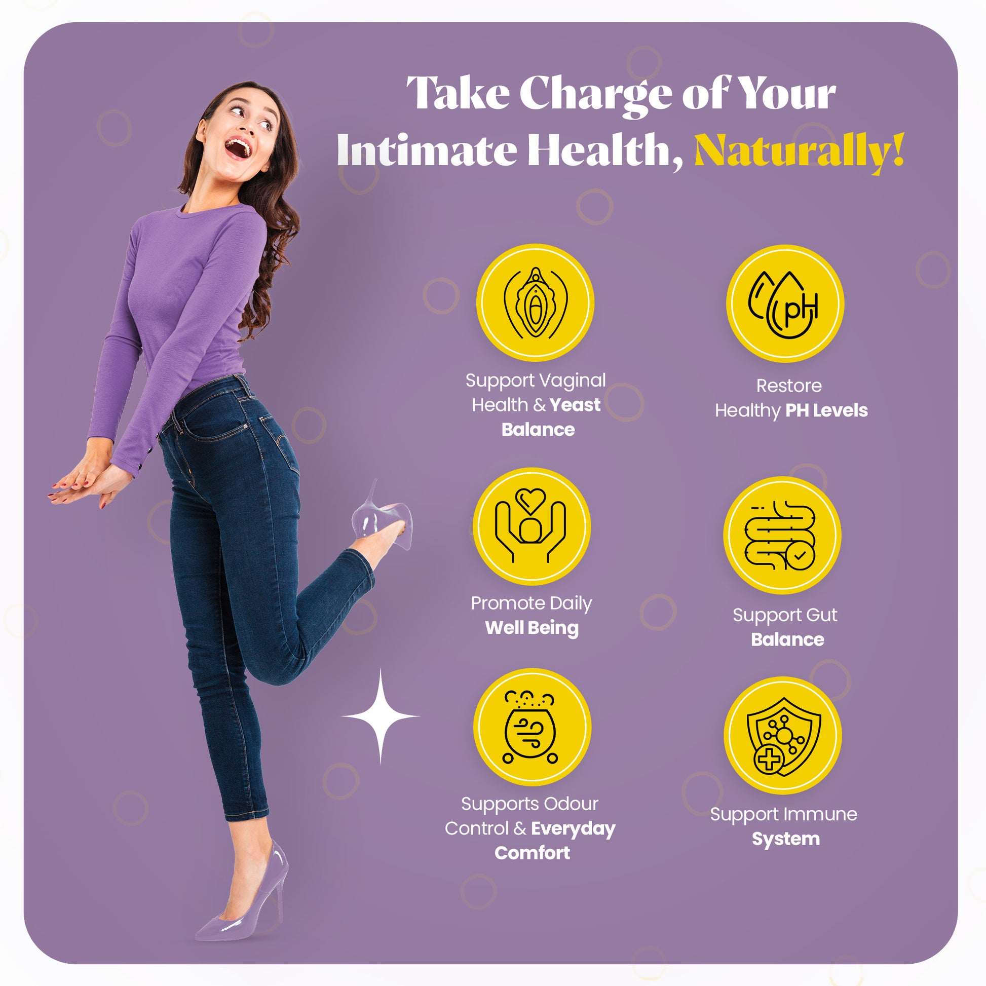 Formulated with clinically studied Lactobacillus Reuteri, Paracasei and Rhamnosus, plus real cranberry extract for urinary tract and odour control, these vegan gummies promote daily freshness, digestion, and bloating relief. Keto, paleo, and low-carb friendly, with no artificial sweeteners, gluten, or GMOs—just clean, doctor-formulated, third-party tested ingredients crafted in a GMP-certified, FDA-registered facility. Feel good, naturally.